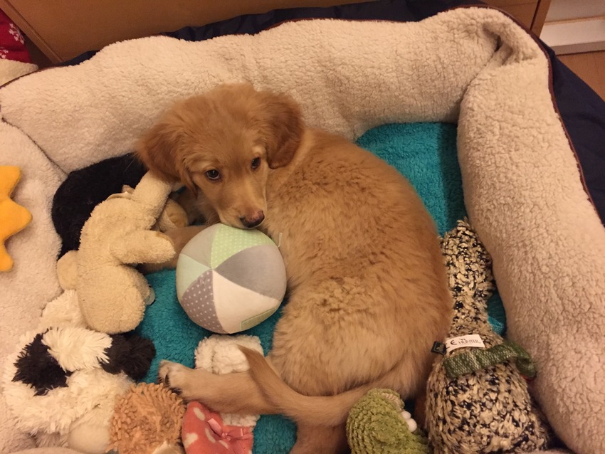 Honden foto's > Hovawart fan > kleine Ivoir tijdens rust momentje ... heb gezocht naar de Duracel batterijtjes...