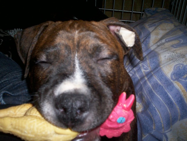 Honden foto's > laura > Bruno met zijn speelkip