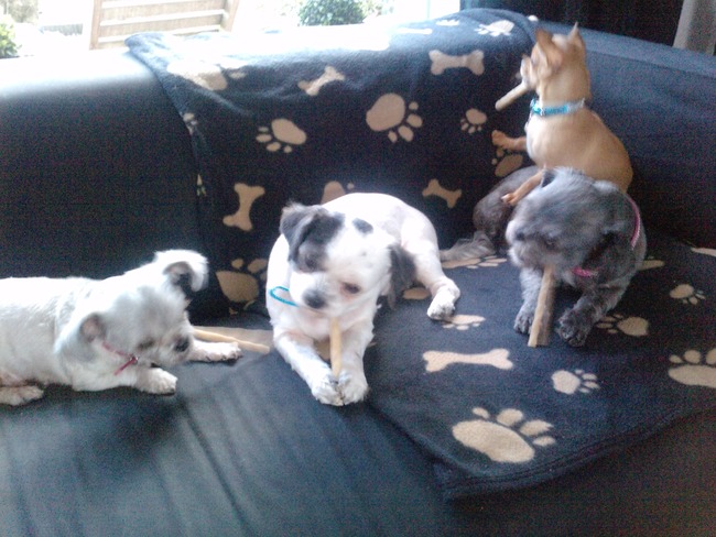 al onze hondjes druk met een kauwstaafje... van diva's dieren casting