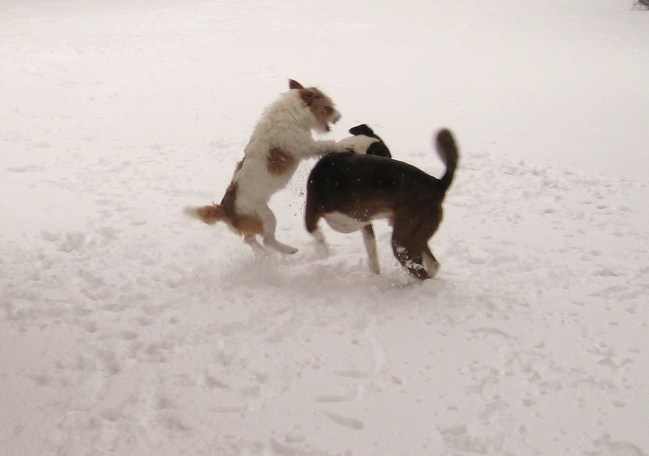 Honden foto's > Cel, Jacko, Louis en Poes > ravotten in de sneeuw