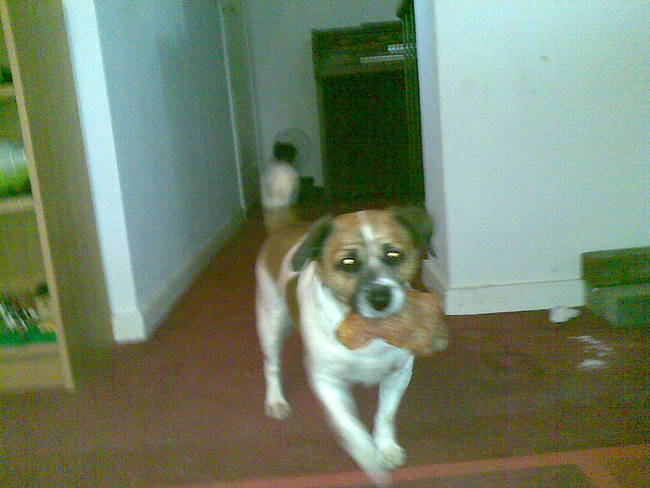 Honden foto's > Rick Stultiens > Bink met een groot gedroogd varkensoor