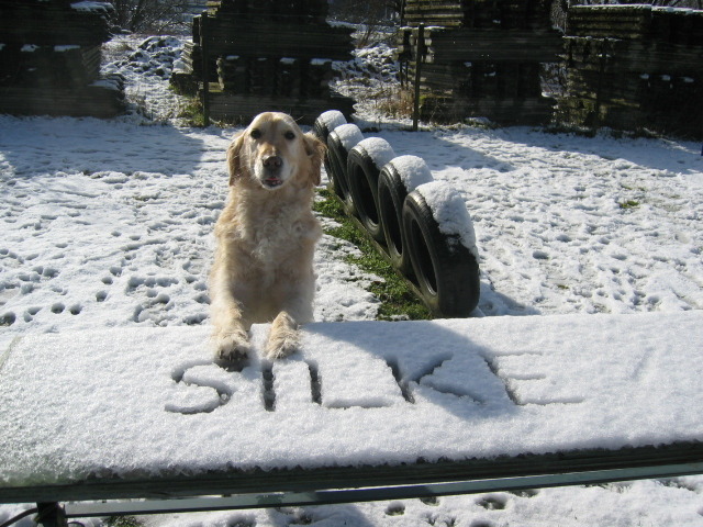 > februari 2005 op de hondenschool. Silke is dan 13 jaar maar gaat nog héél gaarne trainen (op 't gemakske)
