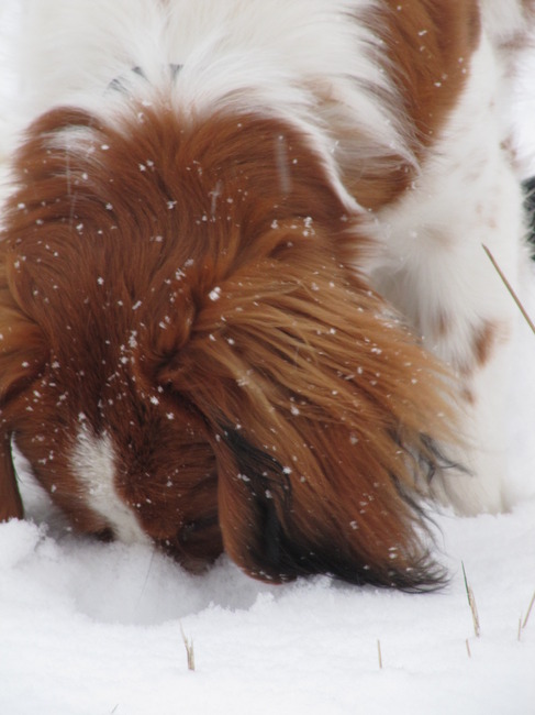 Honden foto's > Sproet > De eerste keer dat ik sneeuw zie, het is koud, nat en... eetbaar?