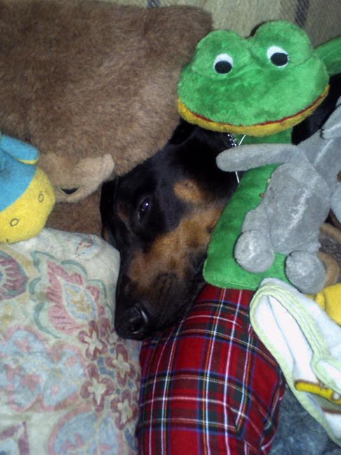 Honden foto's > Sandra en Amigo Dobermann > Wie is nu de knuffel?