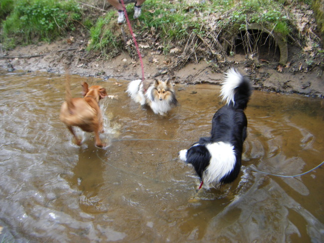 Honden foto's > Jessica > Mijn allereerste stapjes in dat koude water,, wat spannend
