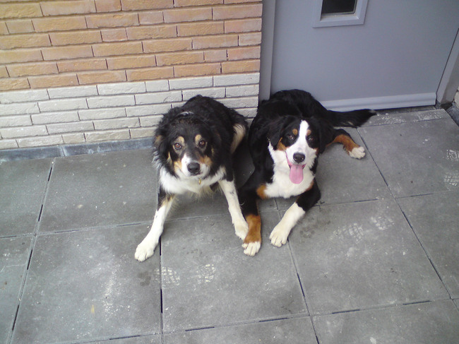 Honden foto's > Dennis > Zoë 7,5maanden oud en rex(bordercollie)7jr samen