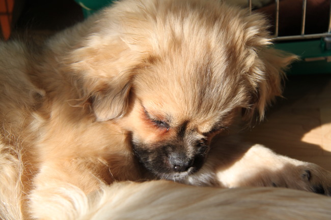 Honden foto's > The tibbies on tour > ik kan mijn koppie niet meer omhoog houden