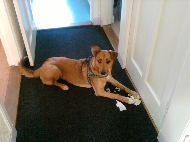 Honden foto's > soraya > Zag je dat?!Er komt zomaar toilet papier onder de deur vandaan!!!Horror.