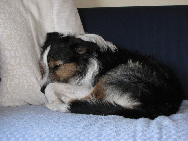 Honden foto's > Joke > Kees in slaapstand. Heerlijk op de bank en wel op mijn plekje.