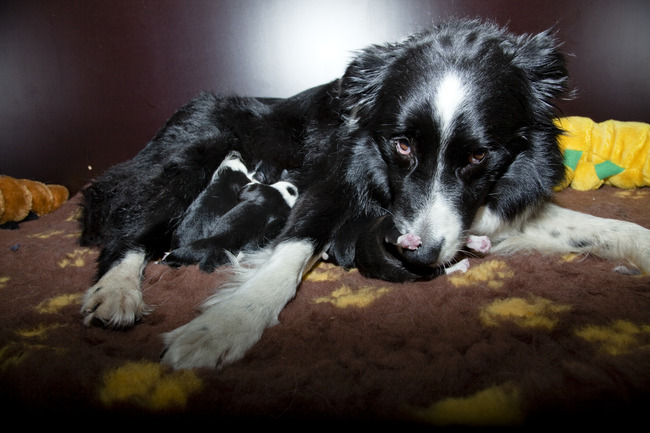 Honden foto's > Hetty & Skipper > Let eens op dat kleine pootje bij de neus van Gwendell ... zo lieffffff