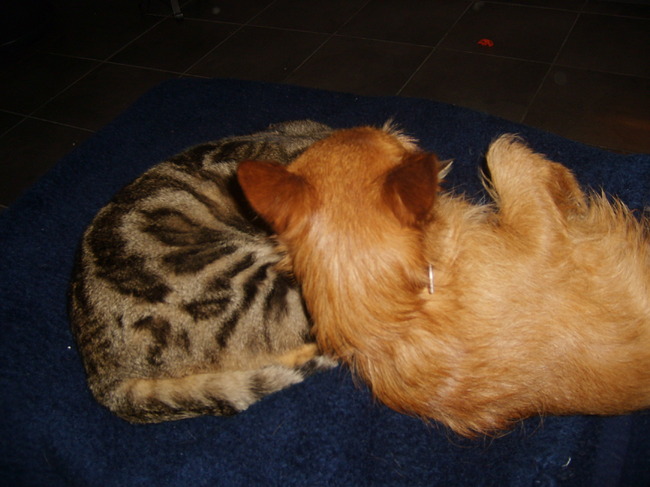 Honden foto's > kevin > jefke en de de logeer poes jaja aan het rusten