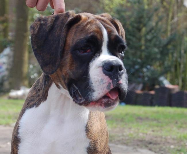 Honden foto's > Petra en de platsmoeltjes > Kop foto, 17 wkn Darco (Di-rect v.d. Westermar)