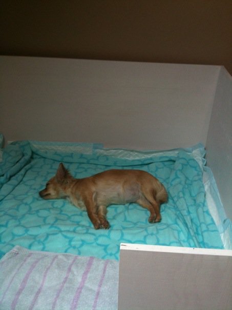 Honden foto's > Ruth > Luna in de iets te grote werpkist:-D