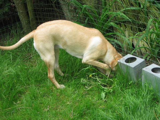 Kira, eens zoeken of er misschien geen graantje naast gevallen is? (bij het parkje van de eend!) van Nathalie & Max & Kira