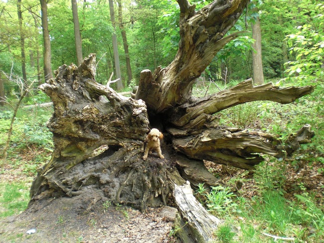 Honden foto's > bets-bean&raider > prachtige boomstam he midden in het bos