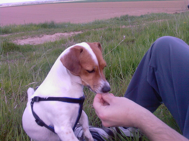 Honden foto's > Floor en Fiefie > ooh lekker! een koekje!