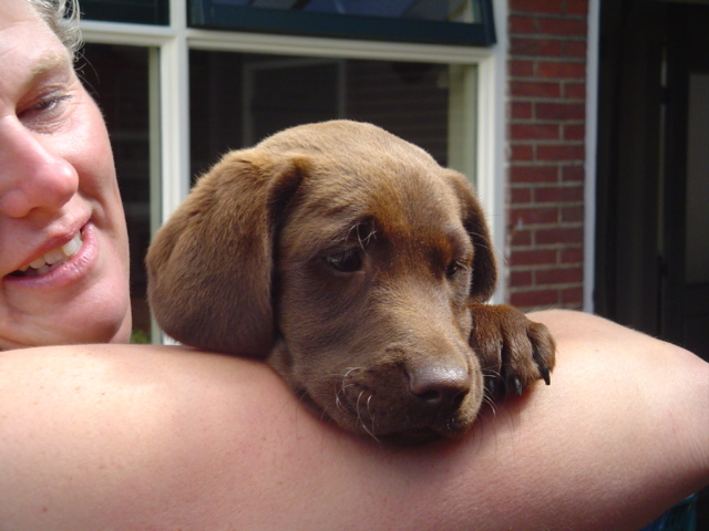 Honden foto's > Marlou > Hier is ze nog heel klein en zit ze bij mij op de de arm :)