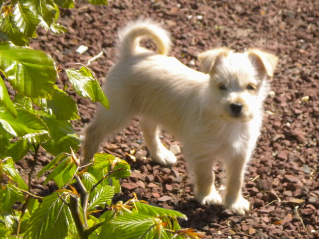 Honden foto's > Dominique, Dizzee en Lewis > Ik had me verstopt achter de planten maar ze hebben me gevonden ...