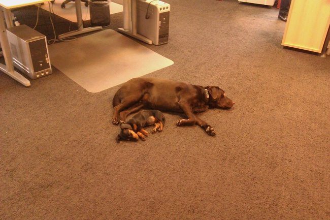Honden foto's > Marcia & Soekie > Soekie en Jodie slapend op kantoor