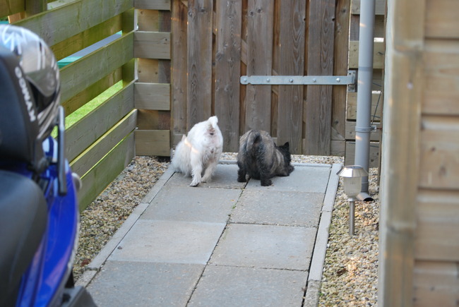 Wij deden alles samen, zelfs onder de poort door kijken, kijken of baasje er al aan kwam. van Sonja, John, Iggy+ ,Chelsea en Amy.