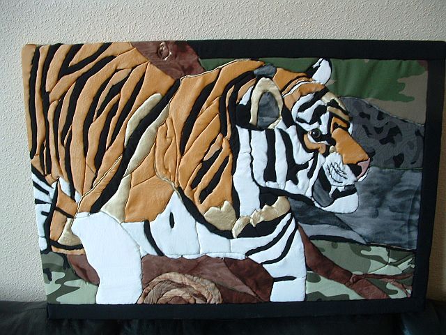 Honden foto's > Beertje > mijn 2e schilderij die ik heb gemaakt van stof.