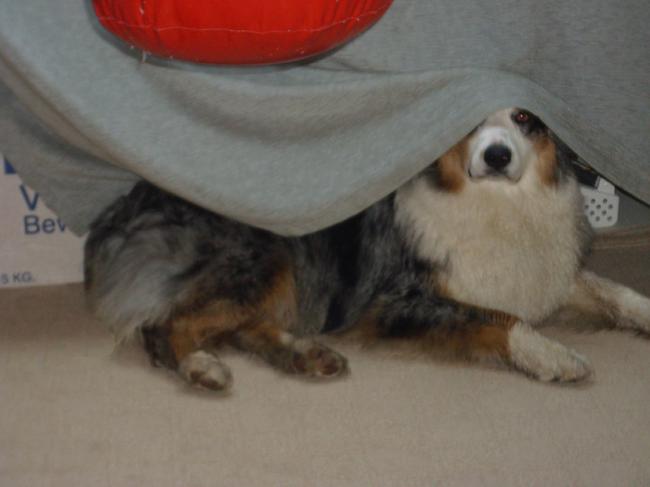 Honden foto's > Waka, Robi, Joy, Abby en het vrouwtje > waka houdt ervan om onder gordijnen te liggen ;)