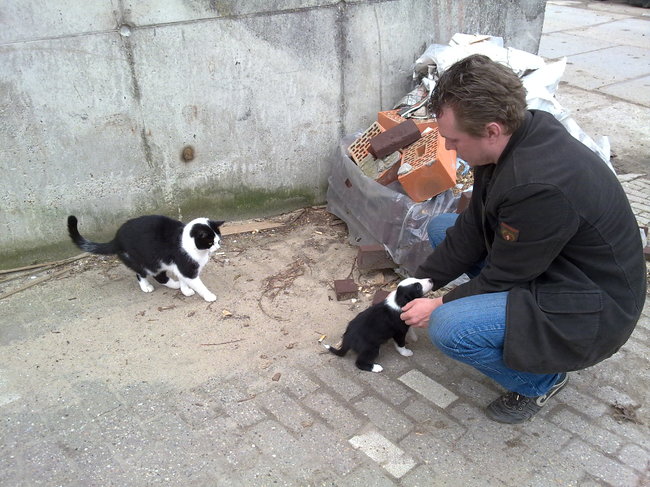 Honden foto's > Anja en Dirk > Eerste kennismaking met de kat!