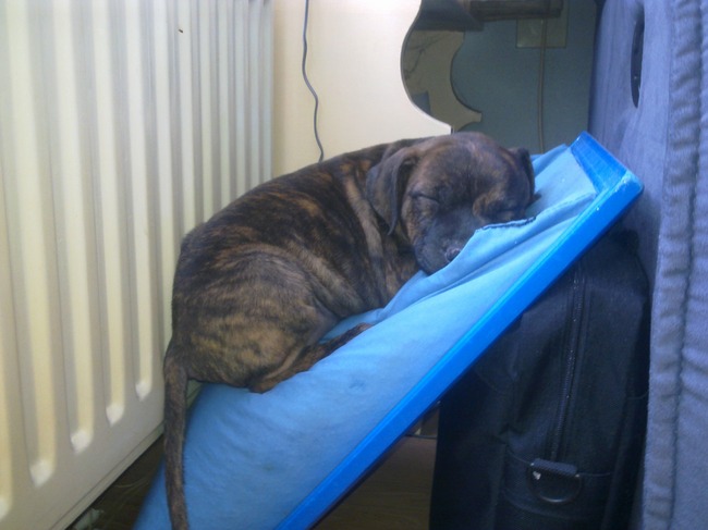 Honden foto's > Missy > Lekker slaapplekje bij m'n ouders.. (het is zo'n ding die je op schoot doet om te eten op de bank bv)