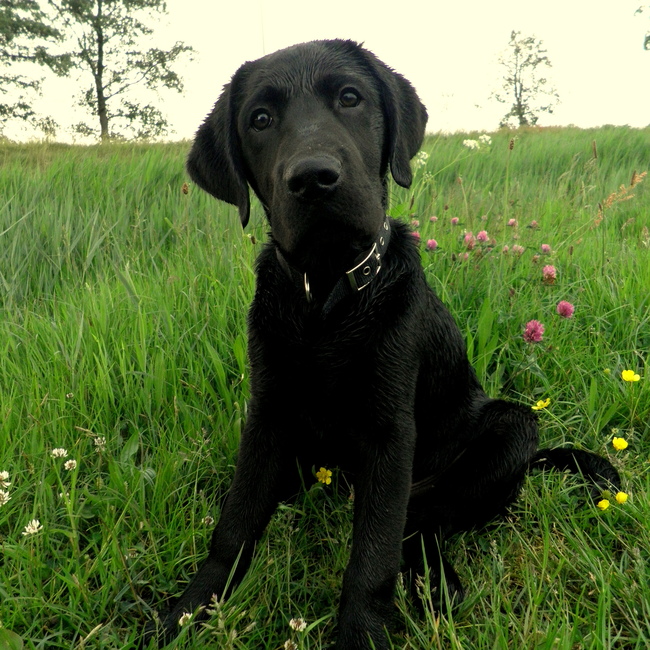 Honden foto's > Labrador Lobbes > 16 wkn oud, watergek zit de labrador echt in de genen!