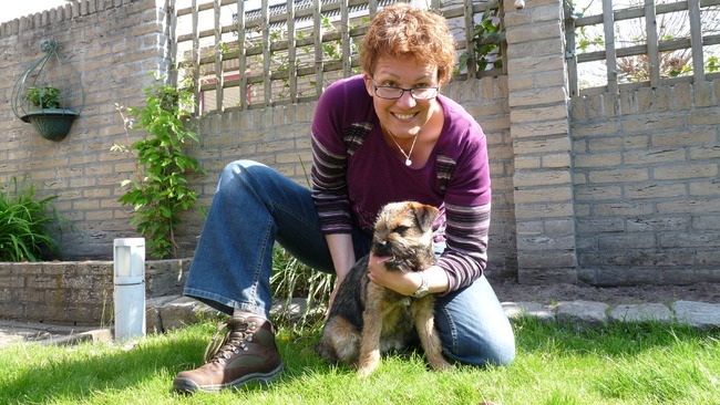 Honden foto's > Mariette Boers > op de foto met mijn baasje in de tuin