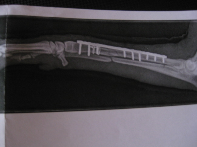 Honden foto's > Brienne > en zijn poot weer netjes aan elkaar gezet!