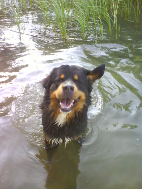 Honden foto's > Brienne > Bandu lekker aan het zwemmen geweest!!