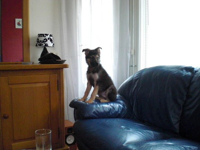 Honden foto's > Talitha & Tibor & Rocky > Tibor op de uitkijk haha, ik snap ook niet waarom hij nou altijd daar ging zitten.