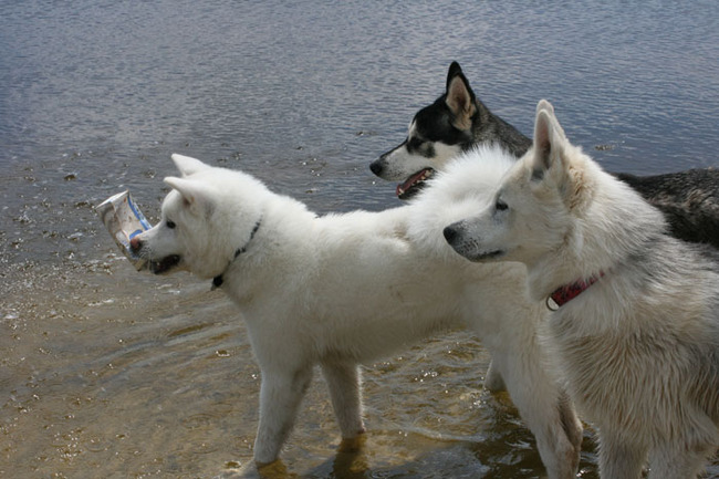 Honden foto's > YmY en de bende > Kenji met zijn bodyguards? Of zouden King en Ozzy gewoon dat melkpak willen hebben...