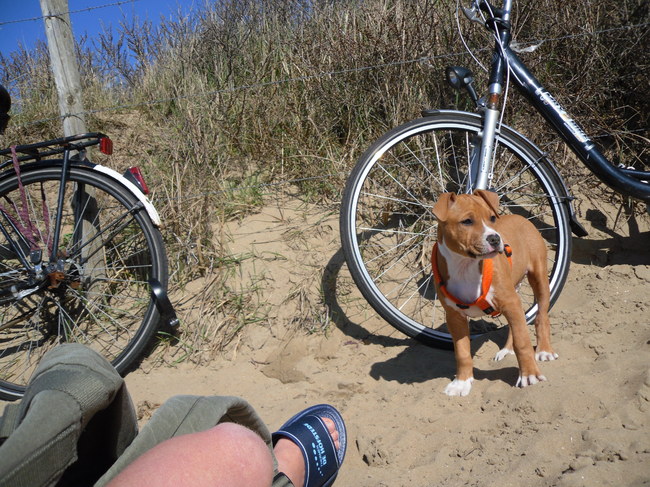 Honden foto's > staffie > Mijn eerste daggie van me jonge leventje aan het strand!WOW wat is het groot hier dudes