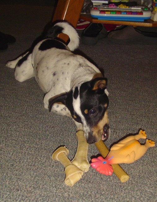 Honden foto's > Betty > die harde stok is het alle lekkerste van de cadeautjes, vrouwtje
