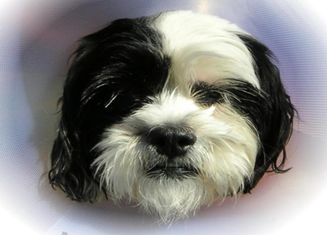 Honden foto's > tineke > hier was daizy net geopereerd. en had hier een kap om