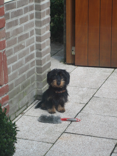 Dinky, het ondeugende ruwharige black & tan dwergteckeltje. van Marije