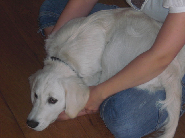 Honden foto's > Chantal > Ik voel me echt een schoothondje!
