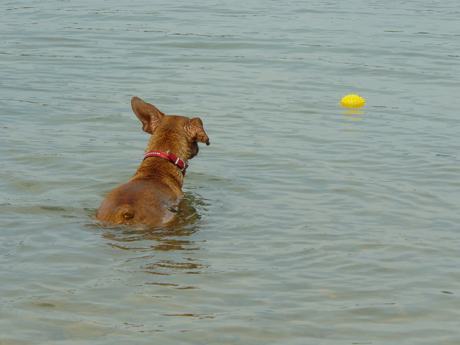 Honden foto's > Rocky & Ivonne > mijn balleke even uit t'water halen