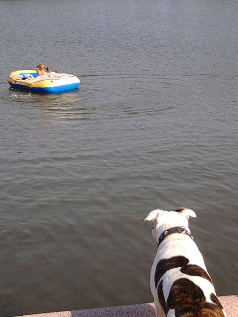 Dochterlief aan t meer en Hondlief kijkt toe...zo lief! van Trotsuh Eigenaar Van Kyra