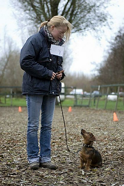 Honden foto's > Evelien > Met het puppyexamen! Hij zou een stijve nek krijgen.