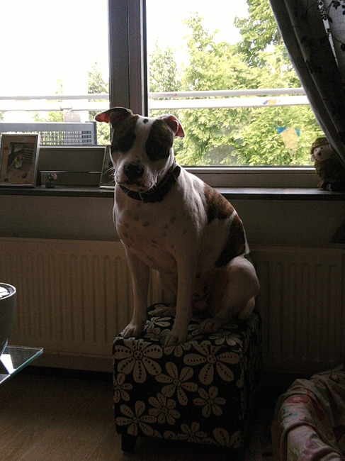Honden foto's > Trotsuh Eigenaar Van Kyra > Kijk dr zitten dan op t te kleine bankje...