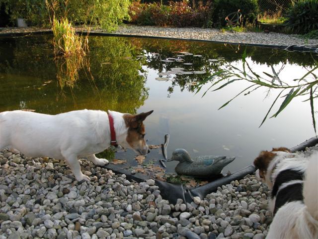 hee , wat een rare eend , hij beweegt niet eens van hondengek , reny