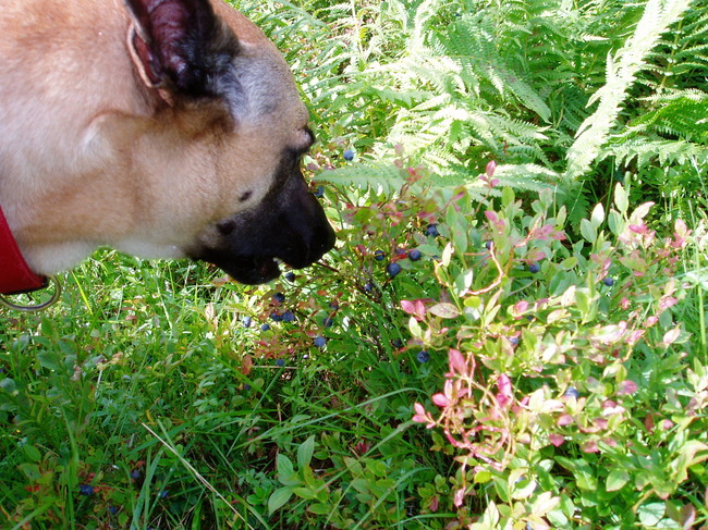 Zowie houdt van blauwe bosbessen. Hij plukt ze zelf uit de struiken vandaan. Hij doet ons gewoon na. van ellen en zowie†