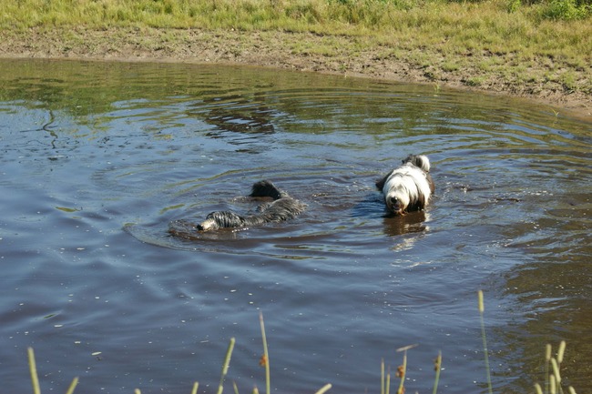 Honden foto's > Dewi • Promise • Duuk > Prom en Duuk in het water.