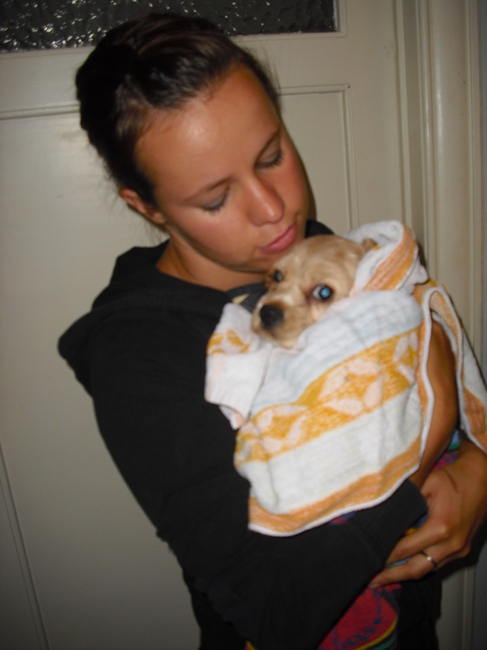 Honden foto's > marjan > Heerlijk in de handdoek gewikkeld na mijn eerste badje