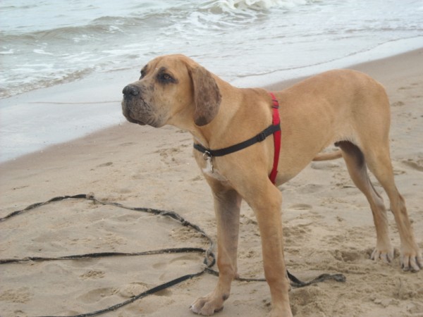 Jacko, 6,5 maand op het strand in De Haan van Anne met Ike en Jacko