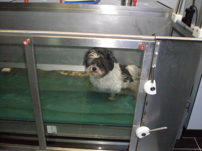 Honden foto's > Patricia & Rocky & Mandy & Moby > rocky bij de fisio therapeut nadat hij geopereerd is aan een hernia