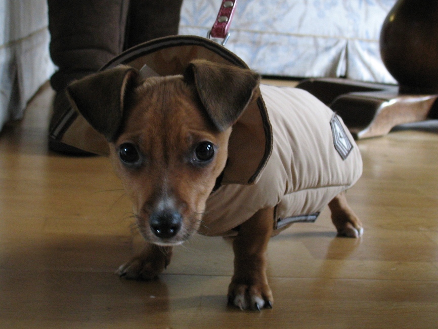 Honden foto's > Miranda > Senna int klein met dr jasje voor de kou!